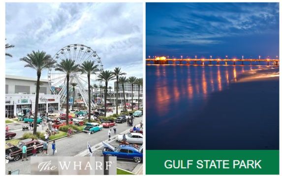 Bikes: With scenic trails at Gulf State Park and The Wharf, biking is a safe and enjoyable way to explore coastal views and attractions.